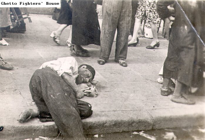 2.6 Um judeu estendido numa calçada junto a um muro no Gueto de Varsóvia.