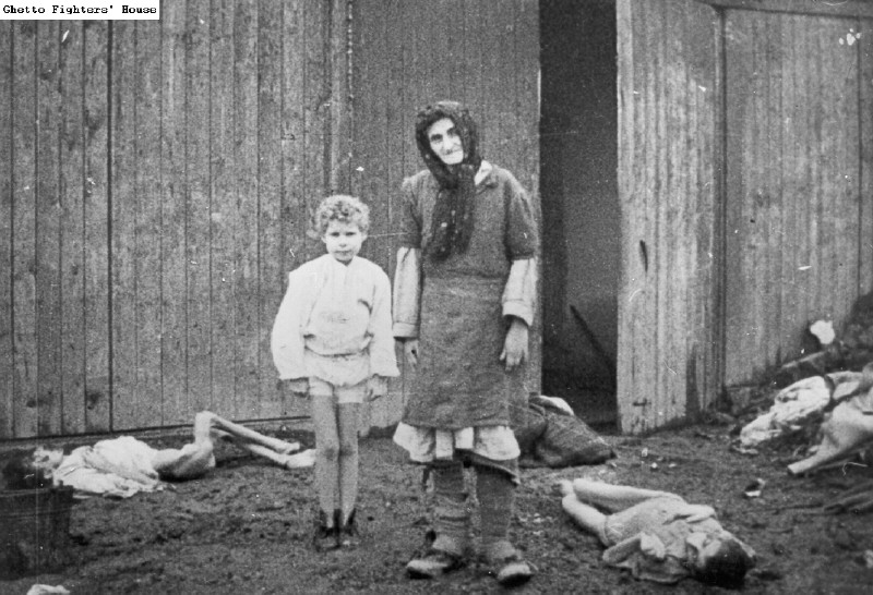 2.83 A Jewish girl sitting beside the body of her mother in the Borislav ghetto.