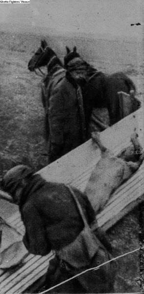 2.26 Bodies of the victims of starvation and diseases in the "bet tohorah" of the Warsaw ghetto cemetery.