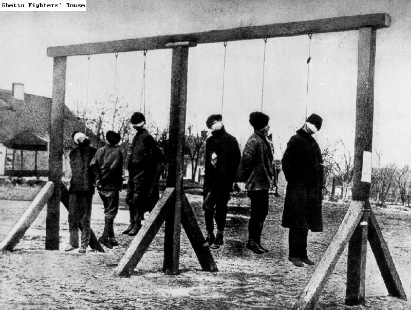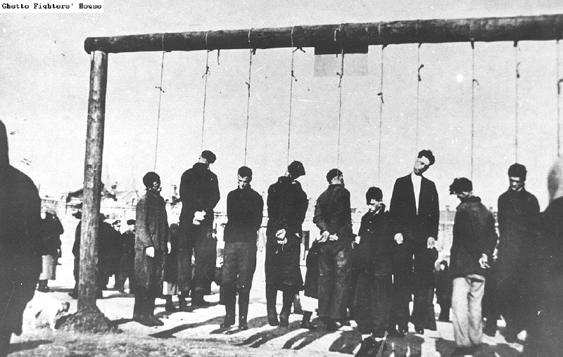 2.94 A public hanging of ten Jews in the Belchatow ghetto.